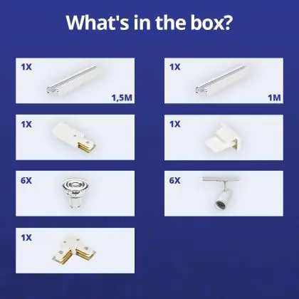 | Fabrikantnaam | Complete L shaped 1-Phase Track Set White incl. 6x Spot fixture + GU10 2700K 3W Dim - 1 x 1.5 meters | |