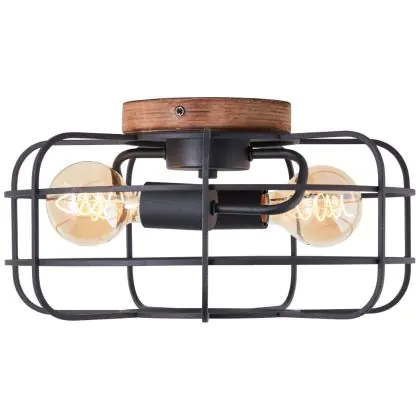 Beschrijving Brilliant Gwen Plafondlamp Metaal Hout Zwart | 400mm - Geschikt voor 2x E27