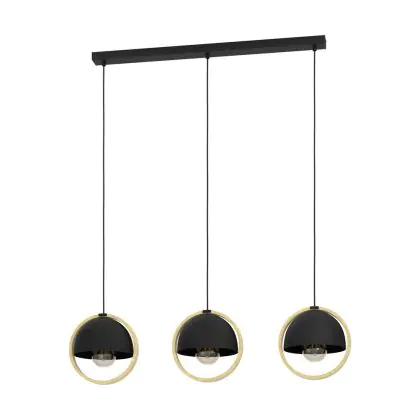 Beschrijving Eglo Hanglamp Callow Staal Hout Zwart Bruin | IP20 - Geschikt voor 3x E27