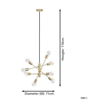 Beschrijving Eglo Hanglamp Gradoli 1 Staal Goud | IP20 - Geschikt voor 8x E27