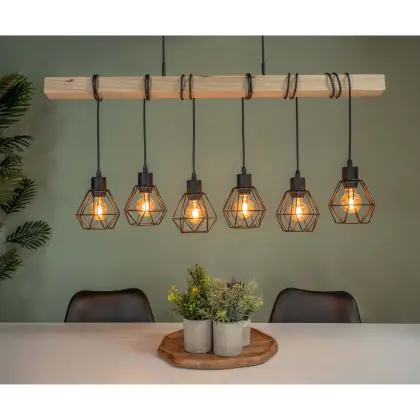 Eglo Hanglamp Townshend 5 Staal Hout Zwart | IP20 - Geschikt voor 6x E27