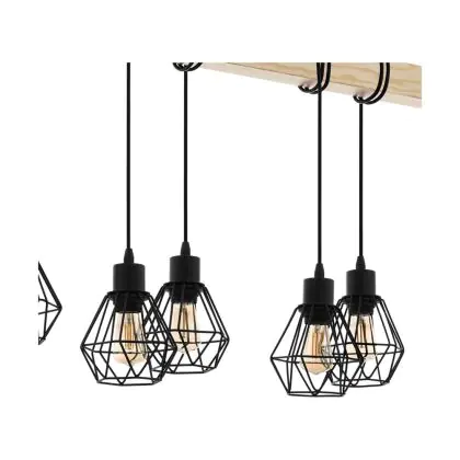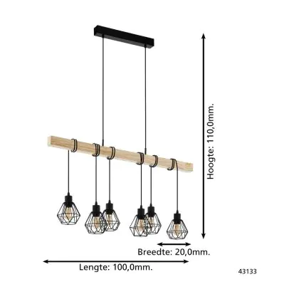Beschrijving Eglo Hanglamp Townshend 5 Staal Hout Zwart | IP20 - Geschikt voor 6x E27