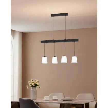 Eglo Hanglamp Townshend 8 Staal Hout Zwart | IP20 - Geschikt voor 4x E27