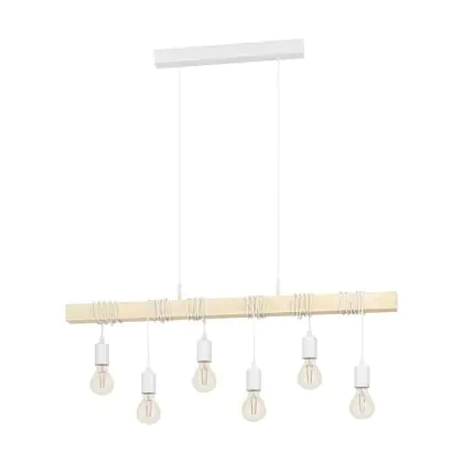 Eglo Hanglamp Townshend Staal Wit Hout | IP20 - Geschikt voor 6x E27