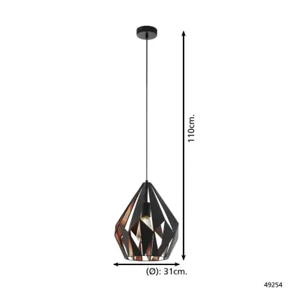 Beschrijving Eglo Pendelarmatuur Carlton 1 Zwart, Koper | Geschikt voor E27