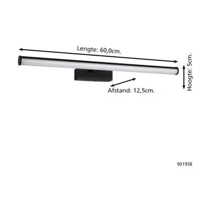 Beschrijving Eglo Wandlamp Vadumi Zwart Badkamerverlichting 11W 1350lm - 840 Koel Wit | IP44
