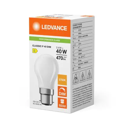 Beschrijving Ledvance Classic LED B22 Peer Mat 3.4W 470lm - 827 Zeer Warm Wit | Dimbaar - Vervangt 40W