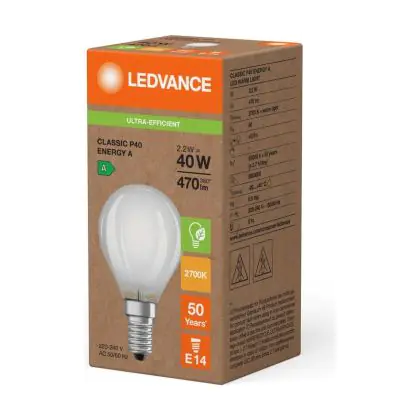 Beschrijving Ledvance LED Classic E14 Peer Filament Mat 2.2W 470lm - 827 Zeer Warm Wit | Vervangt 40W