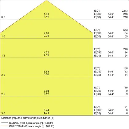 De gradenbundel geeft informatie over hoe breed het licht wordt uitgestraald. Dit zit tussen de 0 en 360 graden (D). Hoe kleiner de hoek, hoe specifieker de lichtbundel is. Over het algemeen is een smalle gradenbundel perfect voor sfeer- of accentverlichting, terwijl een brede gradenbundel ideaal is om grote oppervlaktes te verlichten.