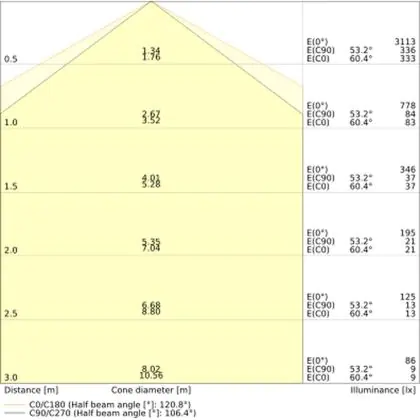 De lichtopbrengst (Lumen), geeft weer hoe krachtig het uitgestraalde licht is. Dit is belangrijk om te weten om de juiste sfeer te creëren. 0 tot 400 Lumen is bij uitstek geschikt voor accent- of sfeerverlichting. Een hoger aantal Lumen is, afhankelijk van de grootte van de ruimte, beter geschikt als ondersteunende- of basisverlichting. Heb je plafonds hoger dan 4 meter, dan is een lichtopbrengst van minimaal 8000lm aan te raden indien heldere verliching gewenst is (vb. in werkomgevingen).