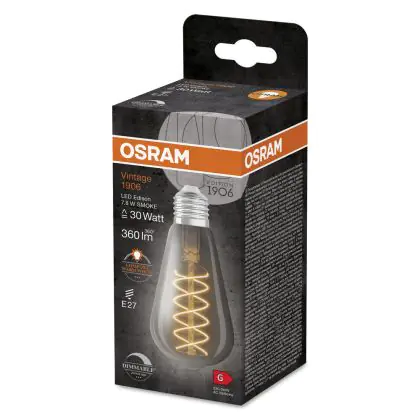 Beschrijving Ledvance Vintage 1906 LED E27 Edison Smoke 7.8W 360lm - 818 Zeer Warm Wit | Dimbaar - Vervangt 30W