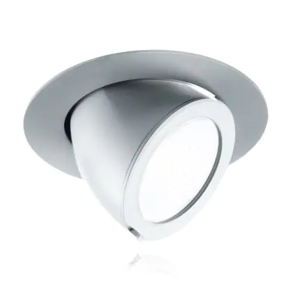Een downlight is eigenlijk een ronde inbouwspot voor plafonds. In winkels (waar deze spots veel gebruikt worden) zitten veel downlights met conventionele CDM lampen. Deze zijn nu eenvoudig vervangbaar door LED. Een downlight die je uit het plafond kunt kantelen zoals deze, wordt ook wel een banaanspot genoemd.