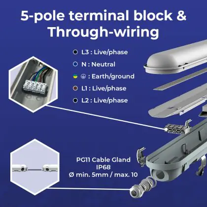 Beschrijving Noxion LED Waterdichte Montagebalk Poseidon V3.0 65W 8450/9100lm - 830-865 CCT | 150cm - Doorvoerbedrading (5x2.5mm2) - Dali Dimbaar