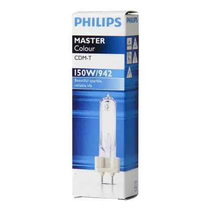 De Philips CDM-T lampen hebben een hoge lichtopbrengst en de kleur is zeer stabiel gedurende de volledige levensduur. De Philips CDM-T 150W 942 G12 is een compacte gasontladingslamp met een G12 lampvoet. De lampvoet maakt het zeer gemakkelijk om uw lamp te vervangen. Het enige wat u hoeft te doen, is de lamp in het armatuur te klikken.