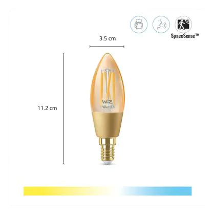 | Fabrikantnaam | WiZ Filament Candle Bulb - Smart LED Lighting - Warm to Cool White Light - E14 - 25W - Gold - Wi-Fi | |